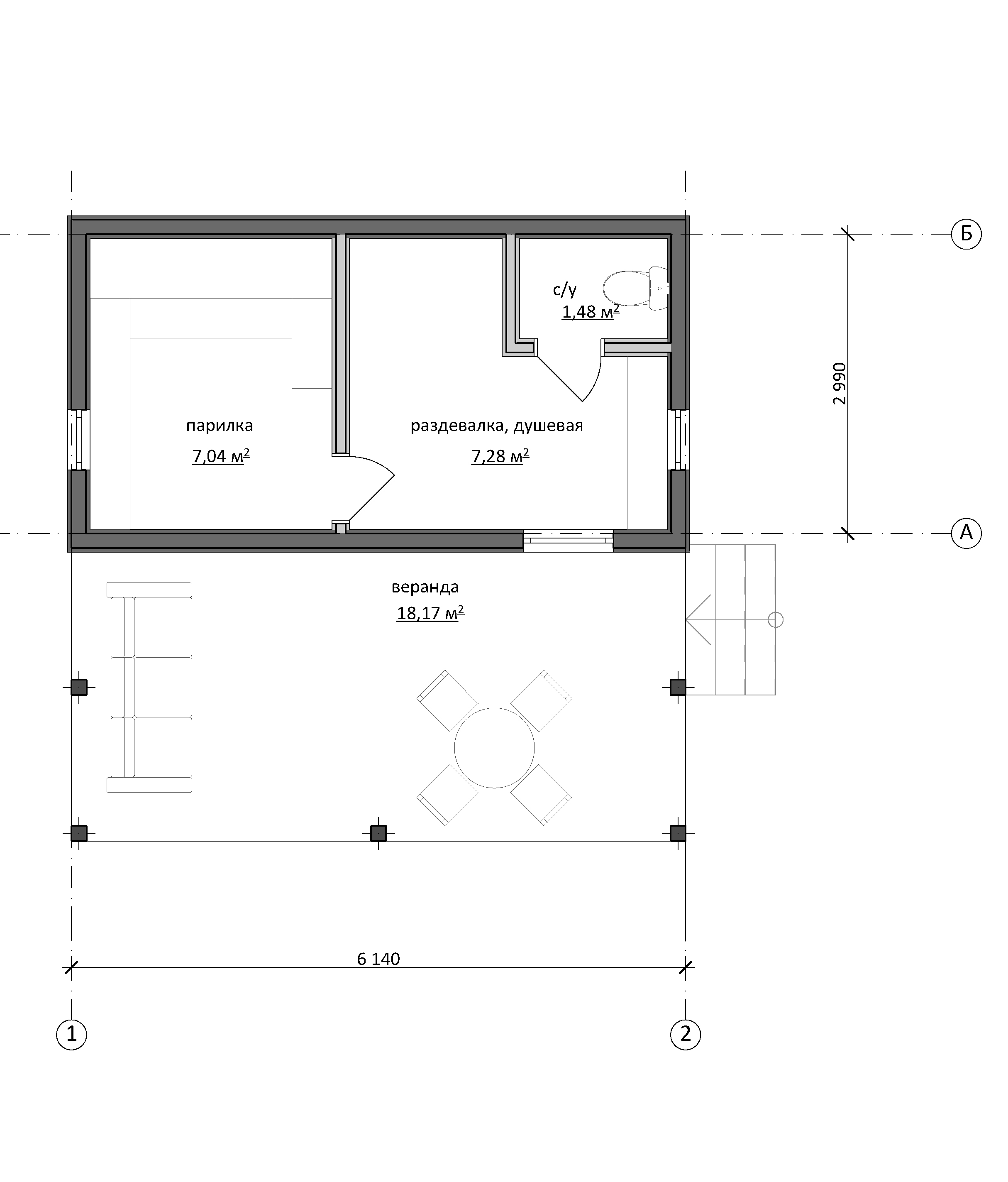 Проект для тех, кто ценит качественный пар и отдых на свежем воздухе. Она состоит из двух зон: