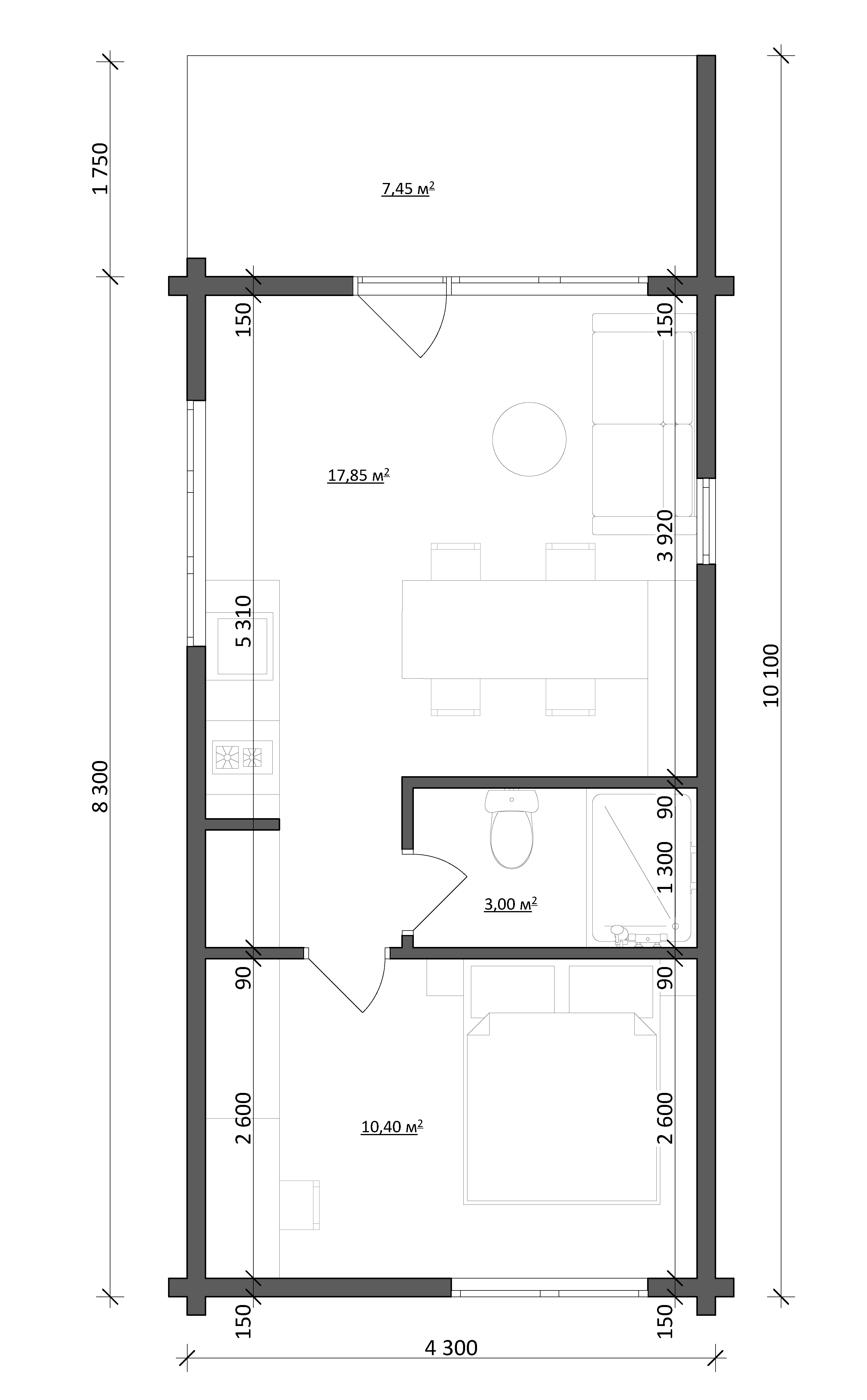 - Теплый пространство: отдельная спальня, чтобы ничто не тревожило ваш сон, просторная кухня-гостиная для приятного общения, полноценный санузел, для еще более комфортного пребывания.